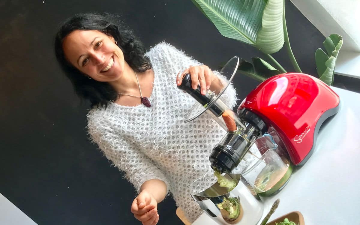 Dans sa pratique de thérapeute, elle rencontre des personnes avec toute sorte de problèmes de santé, y-compris des cas de pathologies lourdes. Pendant longtemps elle se sentait dans une impasse avec ses conseils alimentaires puisqu’ils n’était pas toujours suffisants pour retrouver la santé. Jusqu’au jour où elle a décidé de mettre en avant les jus de légumes et fruits. Mais pas n’importe quel jus et pas fait n’importe comment. Il est important de bien choisir son extracteur de jus, de prendre des produits frais, bio et de saison.